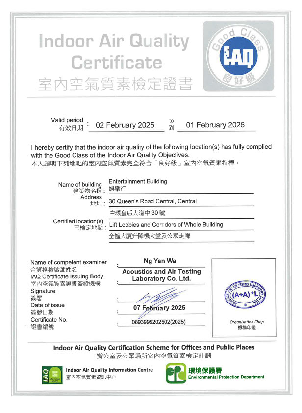 Entertainment Building, a prime retail and commercial development in the heart of Hong Kongˇ¦s Central District, was designed in the classical style by the renowned P&T Group and completed in 1993.